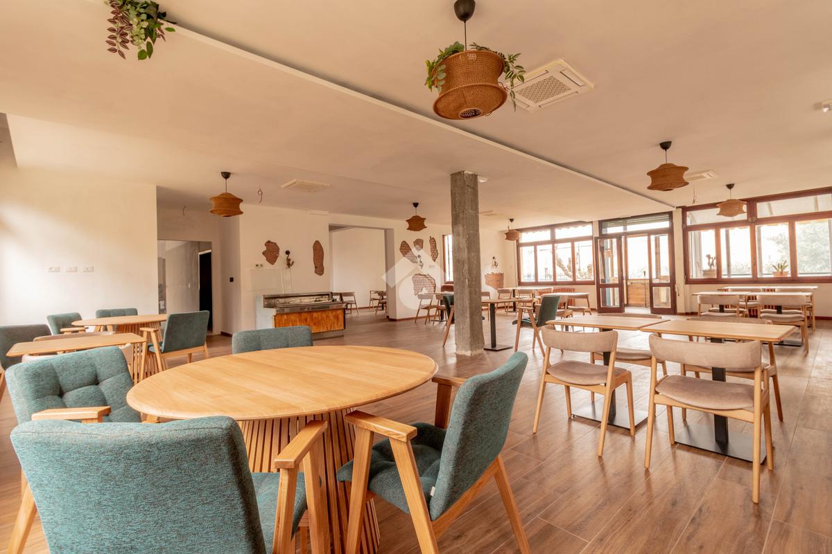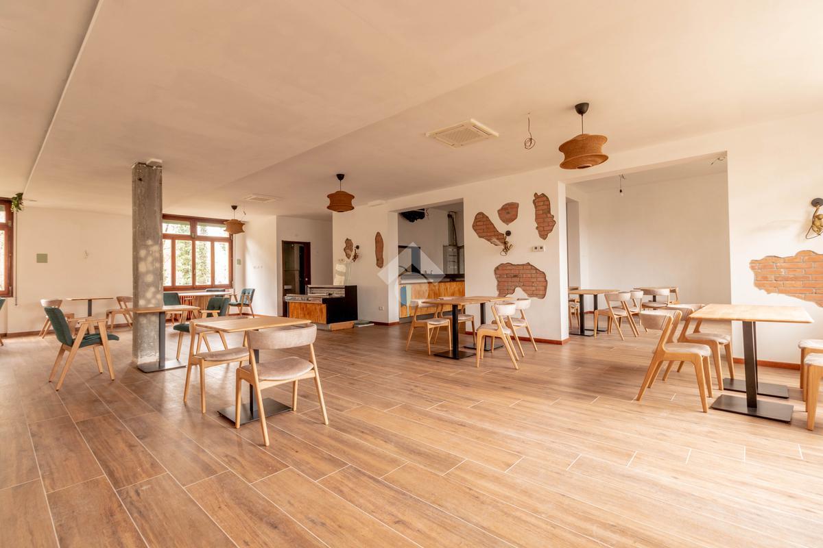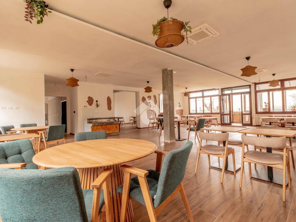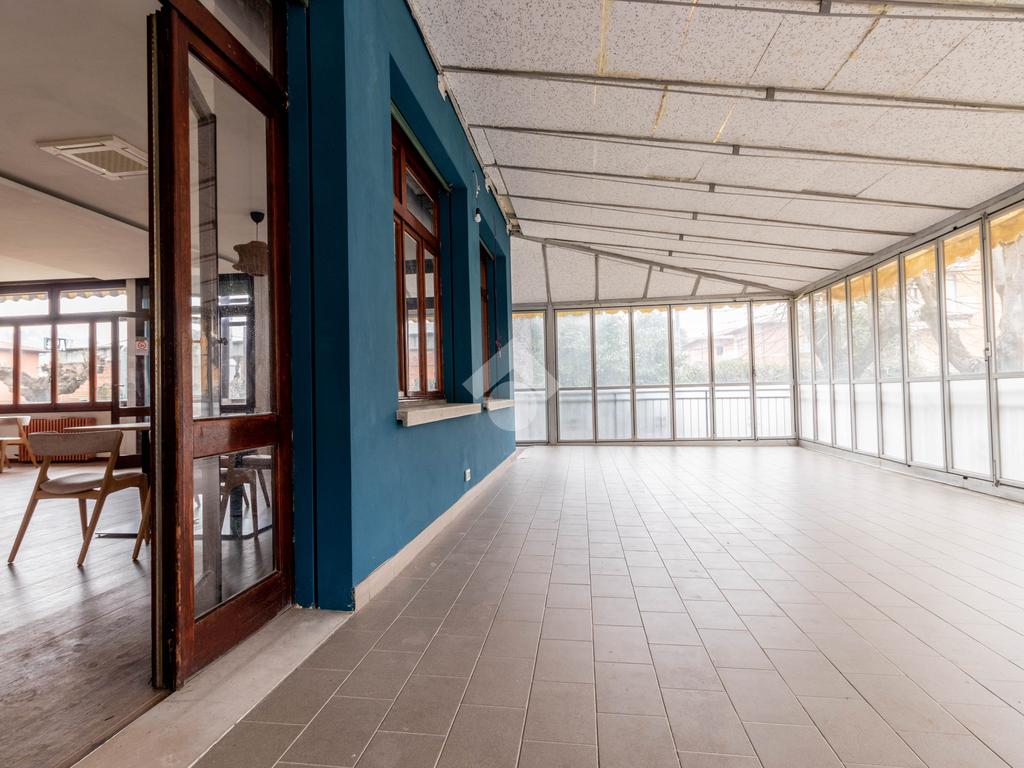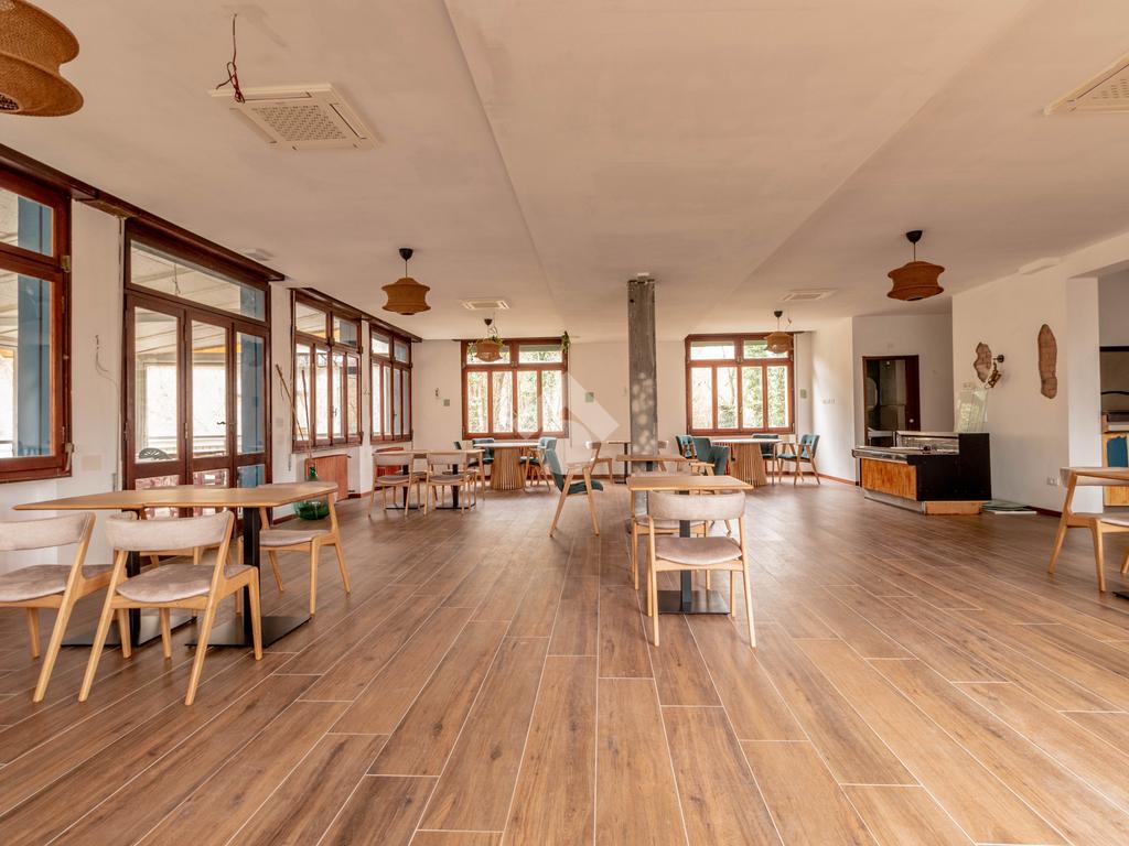 I locali prevedeno grande sala, veranda con affaccio sul verde, zona bar e cucine oltre ai bagni.